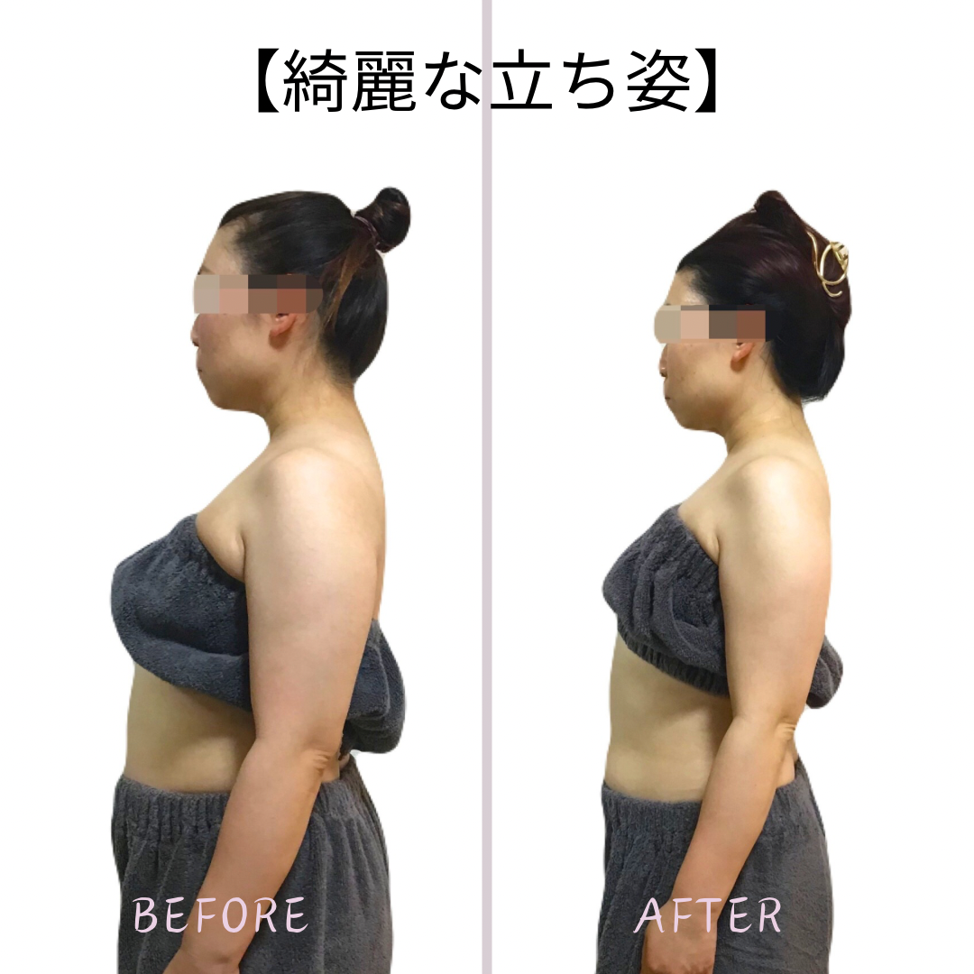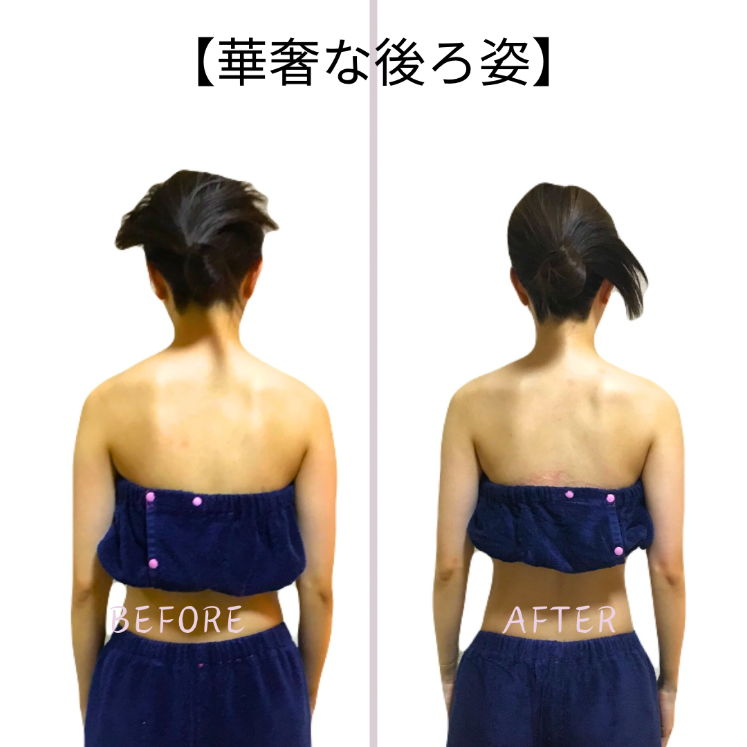 肩の高さ、首のライン、ウエストまわり。 自分では見えない「後ろ姿」気になりませんか? 写真のお客様は ・肩こり・首こり ・巻き肩で背中が丸く見える ・ブラの上にお肉が乗るのがイヤ… というお悩み…