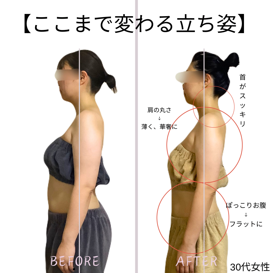 デスクワークで猫背になりやすく丸くなる姿勢やむくみを気にしていたお客様。スッキリしました!!骨盤が立つとお腹に力が入るようになり、くびれもでき硬くなっていた肩甲骨が動き始めると胸も開く。む…